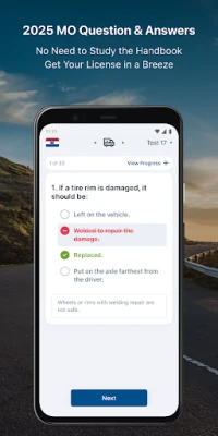 Denne app tilbyder øvelsestests, der hjælper dig med at forberede dig til Missouri DMV-eksamen. Den er ikke godkendt af Missouri DMV og tjener udelukkende uddannelsesformål. Spørgsmålene garanterer ikke beståelse af den officielle prøve.