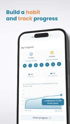 Velkommen til Kalaam, din personlige guide til en dybere forståelse af Koranens arabisk. Med en nyskabende tilgang og avanceret teknologi gør Kalaam det muligt at mestre det koranske sprog på en måde, der er både hurtig, effektiv og varig. Forestil dig at kunne forstå 40% af Koranen på blot en uge og 95% inden for et år, ved at afsætte kun ti minutter dagligt. Kalaam nedbryder komplekse barrierer og præsenterer viden i et format, der sikrer, at din læring fastholdes permanent, uanset om du er nybegynder eller ønsker at forfine din eksisterende viden. Vi er stolte af at understøtte over 80 sprog, inklusiv dem der sjældent er repræsenteret i app-butikker, for at gøre denne rejse tilgængelig for alle.