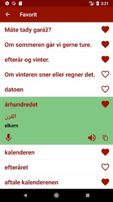 Tag din læring til næste niveau ved at optage din egen stemme og sammenligne den med den professionelle udtale. Denne interaktive funktion giver dig mulighed for at forfine dine sprogfærdigheder og opnå en mere flydende talefærdighed. For at personalisere din oplevelse kan du desuden oprette din helt egen favoritliste over ord og sætninger, som du ønsker at øve dig ekstra på, eller som du bruger oftere. Dette gør det nemt at skræddersy din studievej og fokusere på det, der er vigtigst for dig i din rejse mod at mestre arabisk kommunikation.