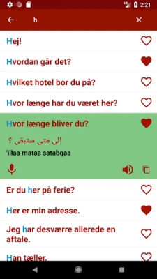 For at gøre din sprogrejse så effektiv som muligt, er indholdet systematisk organiseret. Du finder tusindvis af nyttige sætninger og ord sorteret efter relevante emner, hvilket gør det nemt at finde præcis det, du skal bruge, i mange forskellige scenarier. Værktøjet foreslår desuden de mest almindelige kommunikationsudtryk, så du hurtigt kan tilegne dig praktiske samtalefraser. For at sikre autenticitet og selvtillid i din udtale er der indbygget en standardiseret udtalevejledning på arabisk, der hjælper dig med at mestre sprogets nuancer.