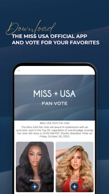 Den officielle MISS USA app lader dig stemme på din favoritdelegat og læse biografier. Udforsk eksklusivt indhold, lær om årets konkurrence, og stem også på MISS TEEN USA.
