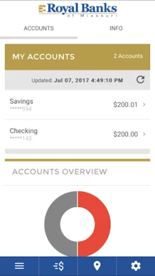 Opnå total kontrol over din økonomi, uanset hvor du befinder dig. Med den mobile løsning fra Royal Banks of Missouri bliver din bankoplevelse strømlinet og personlig. Få et hurtigt overblik over dine konti, tjek dine aktuelle saldi med et øjeblik, og gennemgå alle dine transaktioner uden besvær. Du kan nemt administrere dine kort og foretage sikre overførsler mellem dine berettigede konti, alt sammen fra din håndflade.